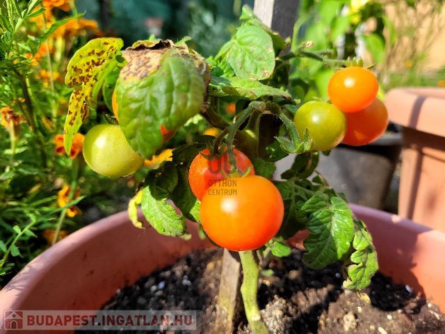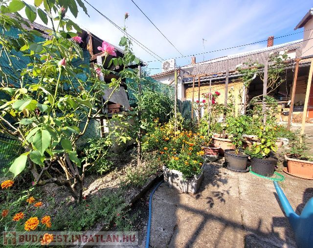 Az ingatlanhoz saját, kb. 100 nm-es terület tartozik, melyből kb. 55 nm-t kertként használnak, a többi tárolási lehetőségekből áll ill. 2-3 autó számára, fedett autóbeállót biztosít.