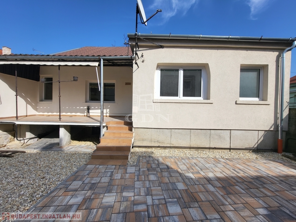 A felújítás során a tágas előszobában beépített szekrények kaptak helyet. Új konyhabútorral is felszerelték az ingatlant. A ház alatt pince található. Nagy, fedett terasszal kapcsolódik a ingatlan a kerthez, amelynek egy része, a lakáshoz van rendelve. Rendkívül jó elhelyezkedésének köszönhetően befektetésnek is kiváló.