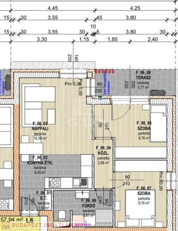 Az ingatlan alapterülete 52.17 m2, 6 m2 erkéllyel.