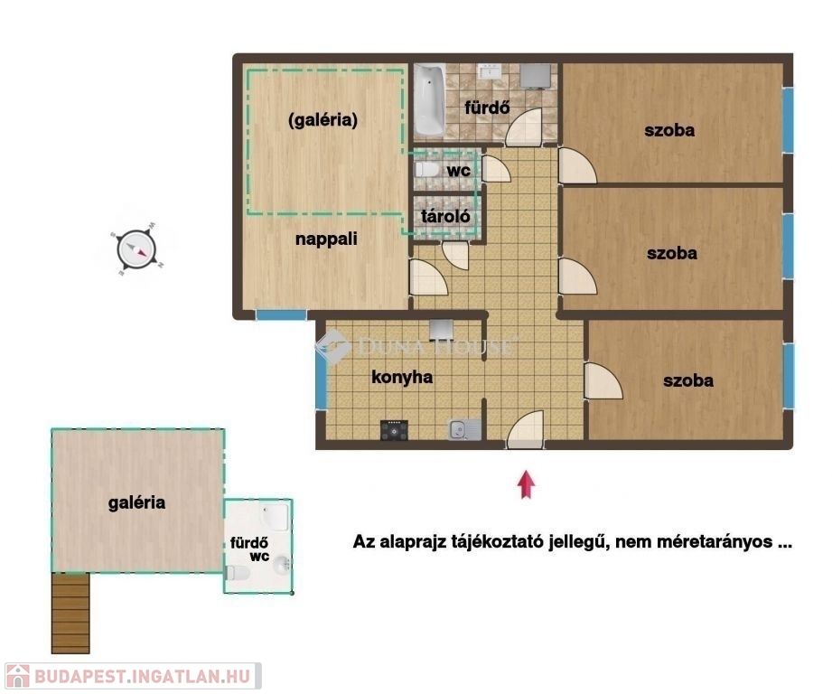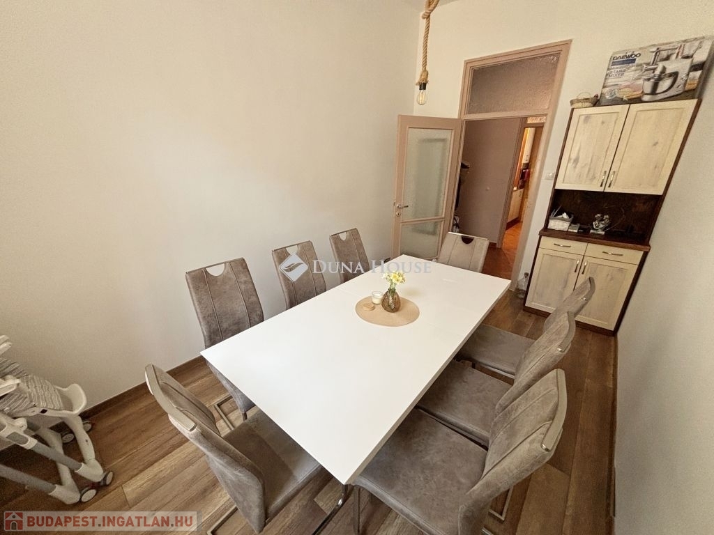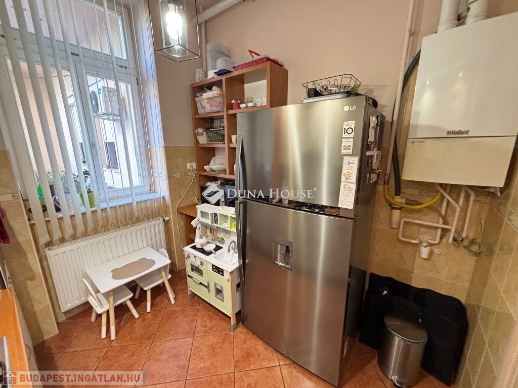A lakásba a kapuszínből jutunk be, előszobájából nyílik a három utcafronti szoba, a fürdő-wc, a ház belső udvarára tájolt a konyha és a galériázott nappali, a galériából nyílik egy kisebb, zuhanyzós fürdő-wc. (összesen 80 m2 + a galériaszint). Az ingatlan 2010 és 2015 között teljes felújításon esett át, műszakilag is korszerűsítve lett, esztétikailag is hibátlan állapotban van. Fűtését gáz-cirkó kazán biztosítja, alternatívaként hűtő-fűtő klímaberendezést is felszereltek.
