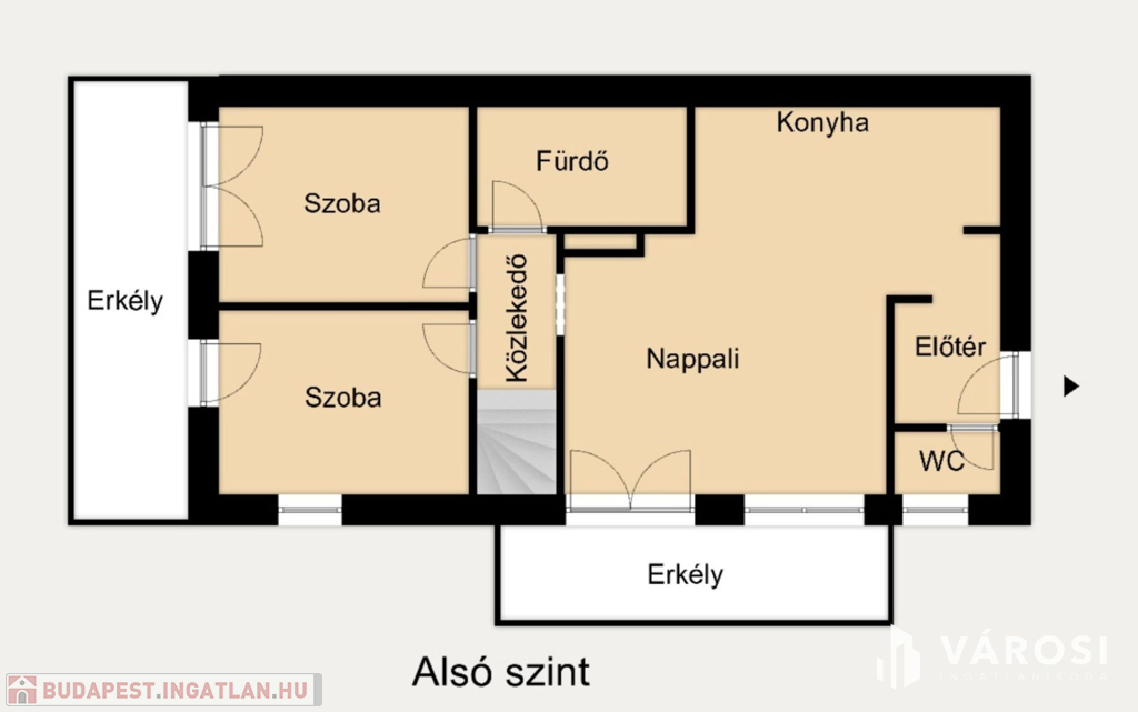 Elhelyezkedés: első emelet, belső kétszintes kialakítás