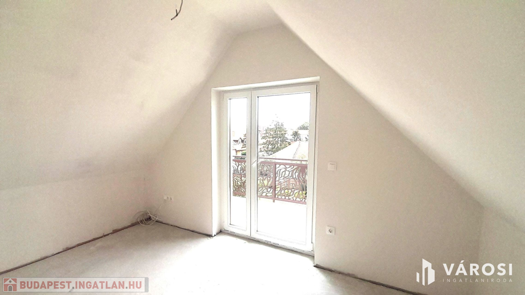 A felső szintre érve további két kisebb szoba (háló vagy gardrób), egy fürdő + WC és egy harmadik terasz található.