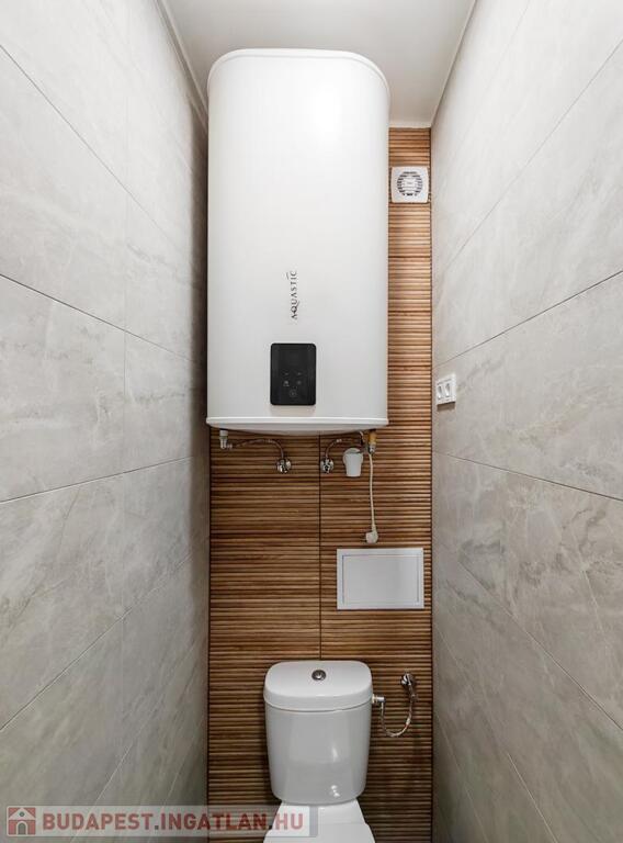 A lakás fűtésérő a szobákban elhelyezett hálózatról is vezérelhető elektromos fűtőpanelek, míg a meleg víz ellátásáról egy 100 literes, éjszakai áramról működő Aquastic villanybojler gondoskodik.