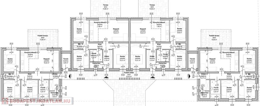 -3-as lakás: 69,23nm + 15,66nm terasz (nappali + 3 hálószoba)+362 nm saját kertkapcsolat