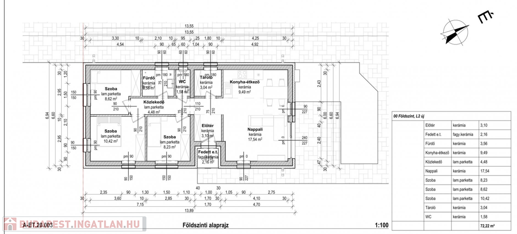 -2-es lakás: 72,22nm + 16nm terasz (nappali + 3 hálószoba)+673m saját kertkapcsolat