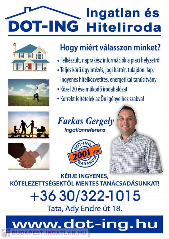Amennyiben a DOT-ING INGATLAN által kínált családi ház vagy bármely más ingatlan felkeltette érdeklődését, kérem, hívjon bármikor a megadott telefonszámon. Ha vásárláshoz finanszírozásra van szüksége, kollégám díjmentes, banksemleges hitelügyintézéssel áll rendelkezésére.