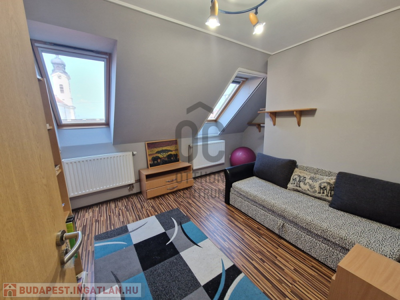 Az ingatlan három külön nyíló hálószobával és egy tágas amerikai konyhás nappalival rendelkezik. Az elosztása kiváló, hiszen minden szoba önállóan megközelíthető. A nappaliból egy 15 nm-es erkélyre léphetünk ki, ahonnan gyönyörű kilátás nyílik a Kálvária-dombra.