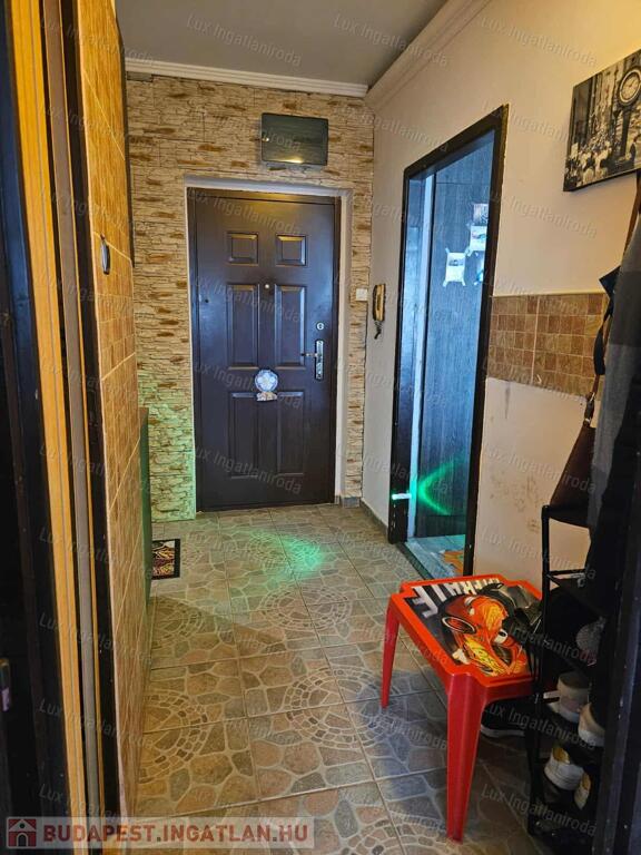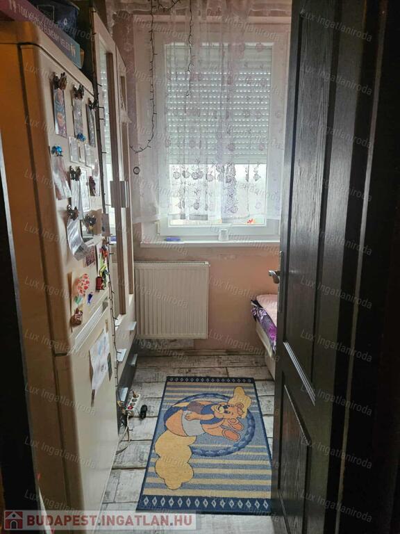 A szobákban laminált parketta van, az előszobában és a főzőfülkében járólap, a fürdőszobában linóleum található. A fürdő és a WC egy helyiségben kapott helyet. A lakás középső elhelyezkedésének köszönhetően meleg és kedvező fenntartású.