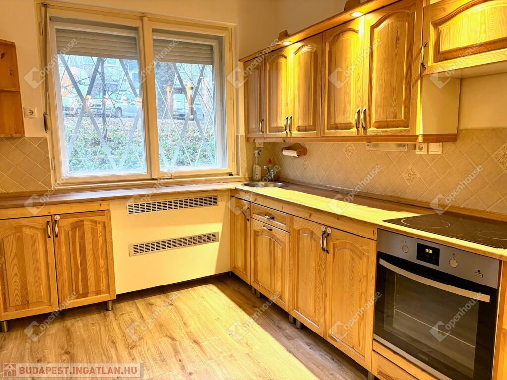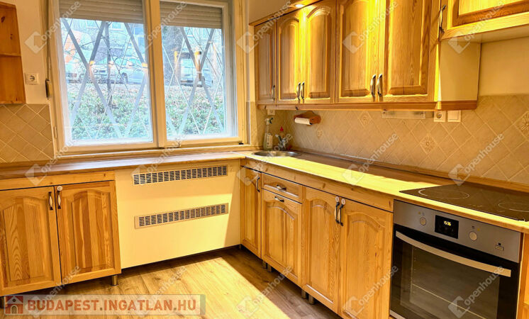 - méretre tervezett, sok pakolási lehetőséget nyújtó konyhabútor, beépített sütővel és tűzhellyel