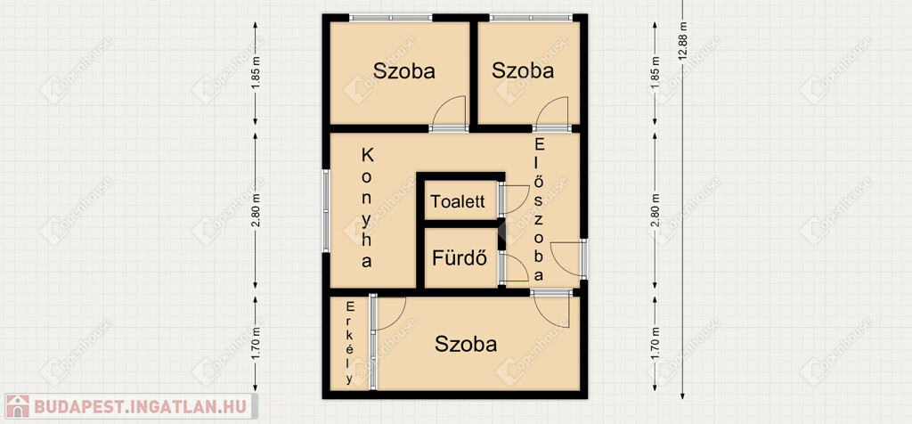 -Egy, plusz két fél szobával rendelkezik, melyek külön nyílóak