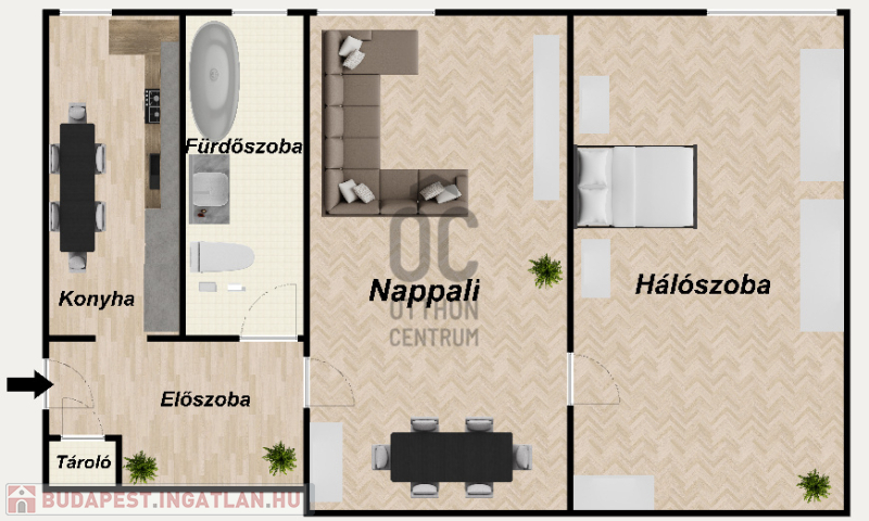 A lakás nagy előnye, hogy a jelenlegi tulajdonos szakmabeli, és kérésre segít az ingatlan 2 szoba + amerikai konyhás nappali elrendezésű átalakításában, így új tulajdonosa saját igényeire szabhatja otthonát.