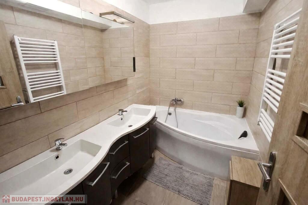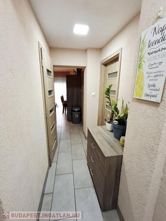 2025-ben a teljeskörű felújítás során a teljes víz- és villanyvezetékek cseréje megtörtént, a burkolatokat is kicserélték, így kellemes és igényes hangulatú a lakás. Az átalakításnak köszönhetően az amerikai-konyhás nappalin kívül még 2 hálószoba került kialakításra, a fürdőszobát is teljesen felújították: dupla mosdókagyló és kényelmes sarokkád került beépítésre. Az illemhely a fürdőtől külön helyiségben található, amelyben a kibővítésnek köszönhetően a mosókonyhaként is funkcionál. A lakásban egy tágas kamra is helyet kapott. Az elektromos hálózatot kibővítették, éjszakai áram is van és a H tarifa kiépítése is megkezdődött. A nappaliba hűtő-fűtő klíma került beépítésre, a lakásban ezen kívül még elektromos panelek gondoskodnak a fűtésről. A melegvizet új villanybojler biztosítja. Az ablakok 3 rétegű műanyag nyílászárok, redőnnyel és szúnyoghálóval felszereltek. A nappaliba tolóajtós teraszajtó és elektromos redőny került beépítésre. A lakás 10 cm vastag külső szigetelést kapott.