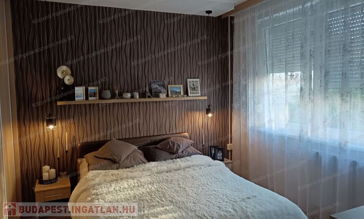 Az ingatlan egy 10 emeletes társasház 4. emeletén található, egyedileg átalakított, teljeskörűen felújított, 2 szobás, 53 m2-es. Helyet kapott benne konyha-étkező-nappali, hálószoba, kisszoba, előszoba, fürdőszoba, WC. A szobák laminált parkettával, a többi helyiség járólappal burkolt. Az otthon melegéről és a háztartási meleg vízről távhő gondoskodik, a hőleadás radiátorokkal történik. A fürdőszobában kád ad lehetőséget a felfrissülésre, lazulásra. A felújítás során cserére kerültek a víz és villanyhálózatok, korszerűsítve lett a fűtésrendszer, cserélve lettek a külső és belső nyílászárók. Az ablakok redőnnyel és szúnyoghálóval felszereltek. A megfelelő hőmérséklet beállításához klímaberendezés biztosított. További tárolásra a lépcsőházban található közös tároló biztosít helyet.