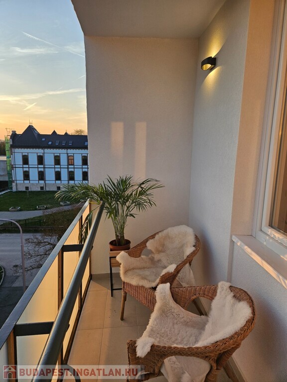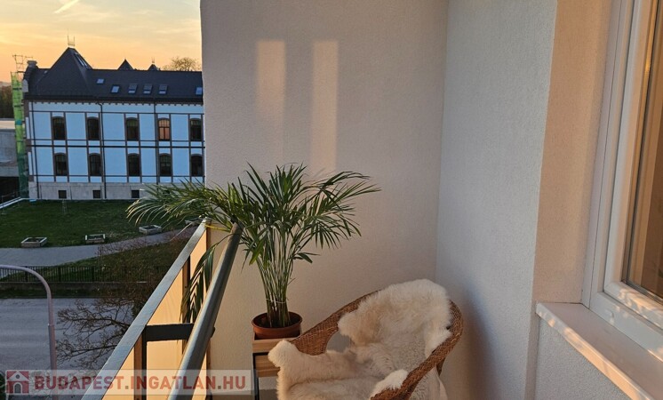 A lakáshoz tartozik egy közel 5 m²-es erkély és egy kb. 3 m²-es saját tároló is.