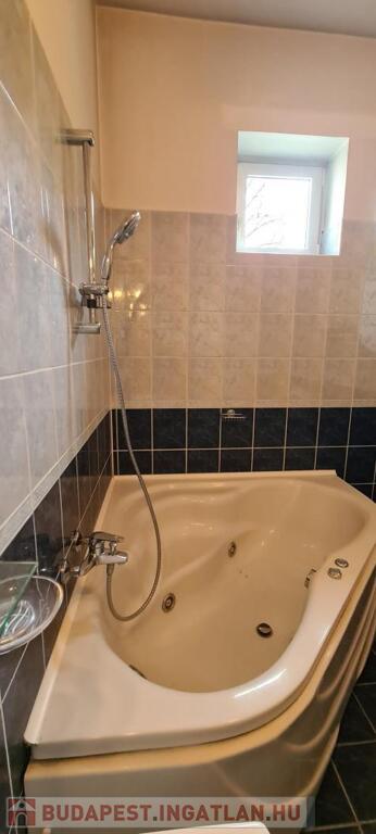 A fürdőszoba tágas, sarokkádas, 2 ablakon keresztül is érkezik be fény, törölközőszárító radiátorral és bidével is felszerelt.