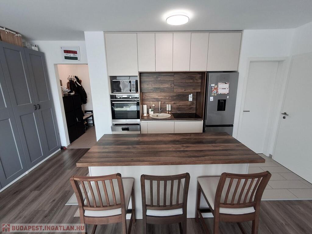 A 3. emeleti lakás 56 nm-es lakótérrel és 4,3 nm-es erkéllyel rendelkezik, mely a hálószobából nyílik. Az épület 30 cm-es vázkerámia téglából és 16 cm-es EPS szigeteléssel épült. A lakás fűtéséről házközponti távhő gondoskodik, padlófűtés rendszeren keresztül, minden lakás saját mérőórával rendelkezik. A műanyag nyílászárók háromrétegű üvegezéssel és redőnnyel kerültek beépítésre. A lakás hűtő-fűtő split klímával felszerelt. A modern, gépesített konyhabútor a konyhaszigettel a vételár részét képezi valamint a meghirdetett vételár tartalmazza a felszíni gépkocsi beállót és a saját tárolót is!