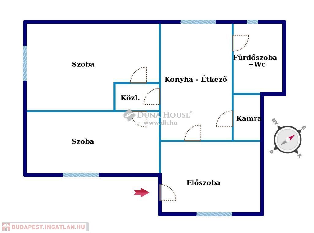 Az ingatlan 2 különnyíló szoba, egy étkezős, ablakos konyha, egy szintén ablakos fürdőszoba+wc, egy kamra, és egy előszoba helyiségek kaptak helyet. Elrendezése praktikus, kisebb családok, fiatalok, összeköltözők, párok, idősek számára is ideális lakóteret biztosít.