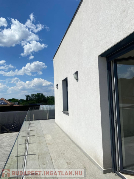 Az otthont egy közel 36 m2-es terasz öleli körbe, így a teraszra nem csupán a nappaliból, de a szobákból is külön ajtó nyílik. A parkolás az épület előtt, illetve a parkosított udvarban is egyaránt lehetséges.