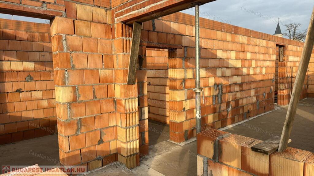 A ház modern technológiával, kiváló minőségű anyagokból készül: Phorotherm 30-as falazat kiváló hőszigetelő képességekkel rendelkezik, így télen-nyáron komfortos hőmérsékletet biztosít. A nyílászárók hő- és hangszigetelő műanyag ablakok, amelyek fokozzák az energiahatékonyságot, és kellemes belső klímát teremtenek.