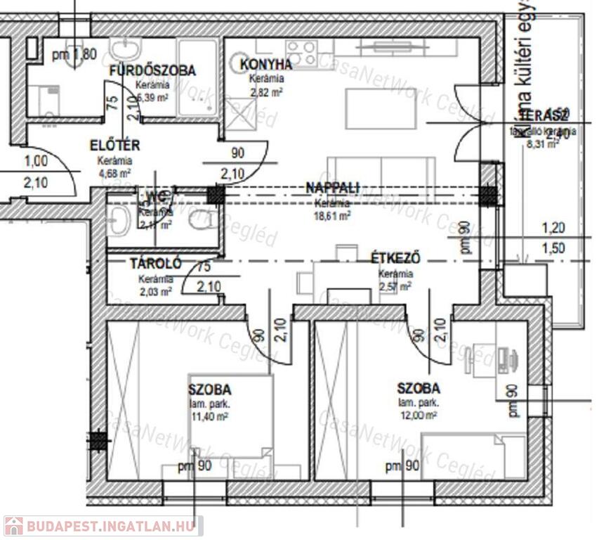Az ingatlan műszaki tervei alapján hirdetjük meg. Kérjük, vegye figyelembe, hogy a használatbavételi engedély kiadását követően kisebb m²-eltérések előfordulhatnak.