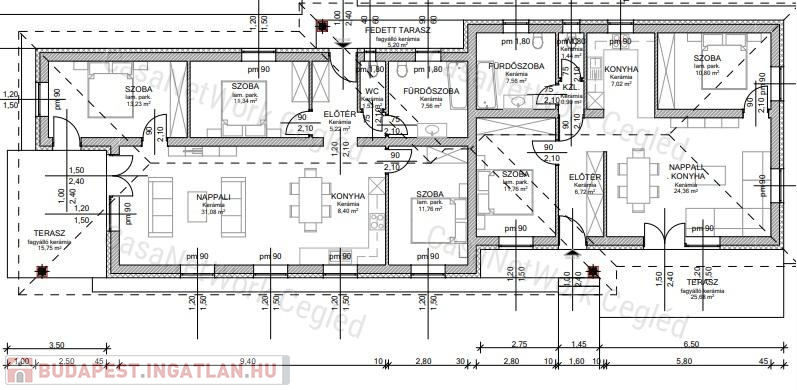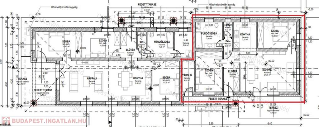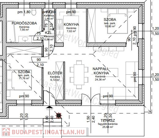 A hirdetett lakás: A. lakás: fűtött lakótér: 70,56 nm + 25,68 nm terasz