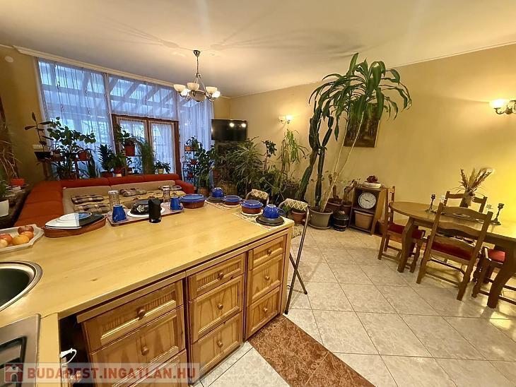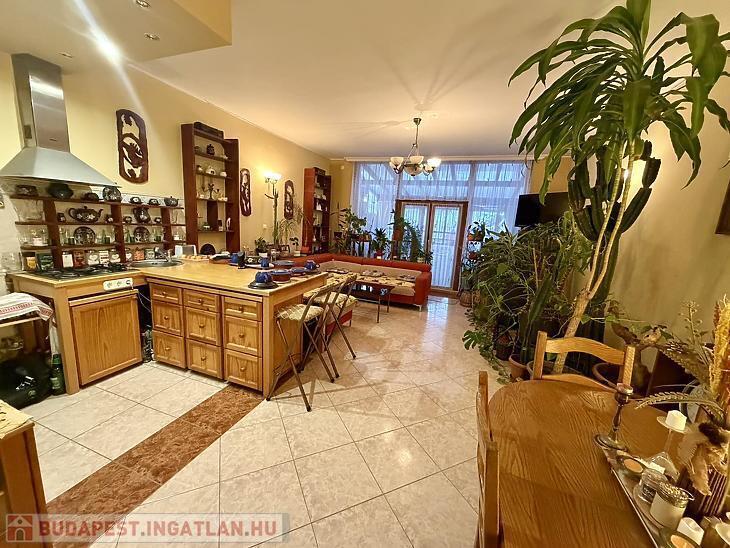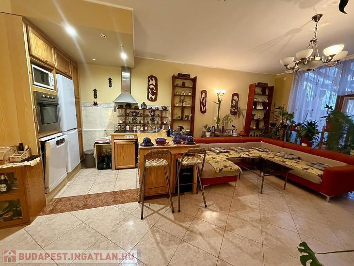 Az ingatlan teljes területén energiatakarékos hőszivattyús padlófűtés biztosítja az egyenletes hőérzetet, a dupla üvegezésű fa nyílászárók pedig kiváló hő- és hangszigetelést nyújtanak. A nappaliból közvetlen kijárat nyílik a 33 nm-es fedett teraszra, amely tökéletes helyszín pihenésre vagy baráti összejövetelekre, emellett a lakáshoz saját, elkerített kertrész is tartozik.