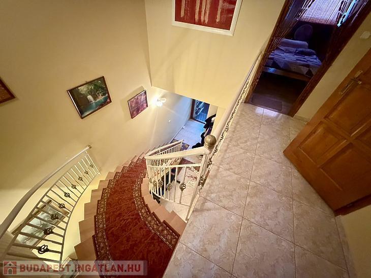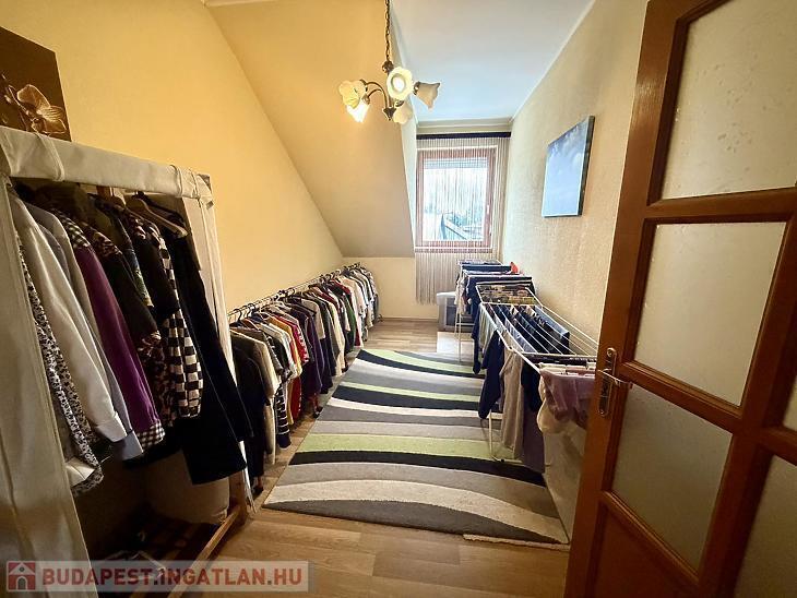 A földszinten található egy előszoba, tágas amerikai konyhás nappali, egy külön nyíló szoba, egy fürdőszoba WC-vel, valamint egy praktikus tárolóhelyiség is. Az emeleten három egymástól külön nyíló hálószoba található, továbbá egy fürdőszoba és egy külön WC szolgálja a lakók kényelmét.