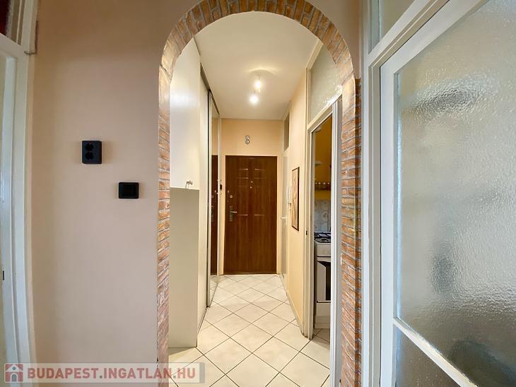 A lakás praktikus elosztású: egy kényelmes előszobából nyílik két külön nyíló szoba, egy világos konyha étkezőrésszel, egy fürdőszoba és egy különálló WC. Az ingatlan keleti és nyugati tájolásának köszönhetően a természetes fény egész nap körbejárja a lakást – délelőtt a nappali, délután a konyha és a hálószoba úszik napfényben, így a terek mindig világosak és tágasak.