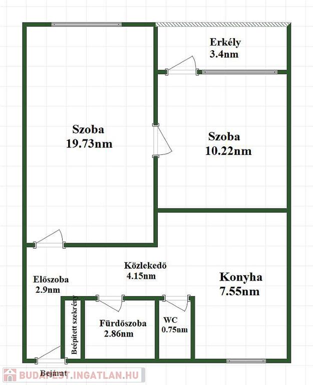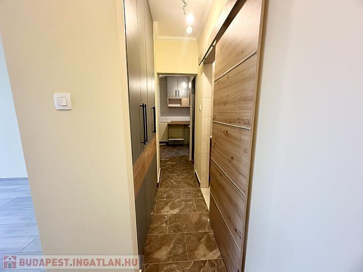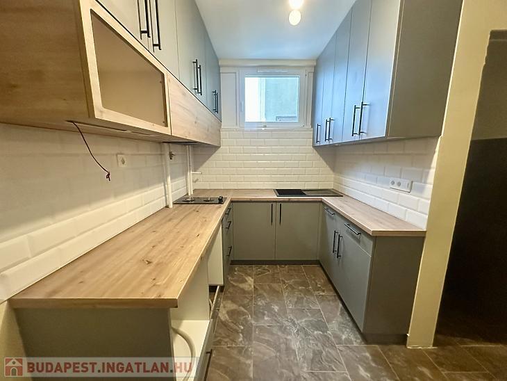 Az ingatlan elosztása rendkívül praktikus és jól átgondolt: előszoba, két világos szoba, közlekedő, teljesen felújított fürdőszoba, külön WC, konyha étkezőrésszel, valamint egy 4 nm-es erkély, amely ideális helyszíne lehet a reggeli kávézásnak vagy a pihenésnek. A lakásban új, egyedileg tervezett konyhabútor, valamint beépített szekrények találhatók, amelyek jelentős tárolókapacitást biztosítanak, és a vételár részét képezik.