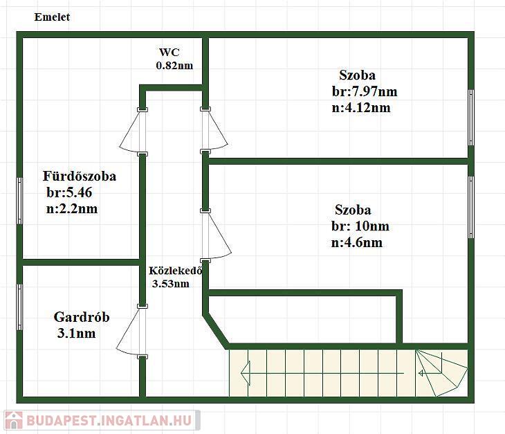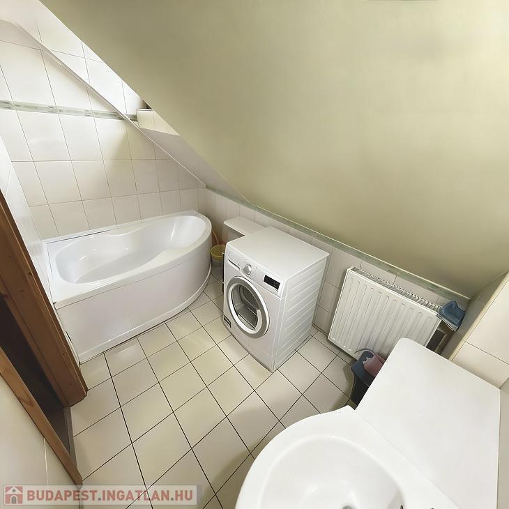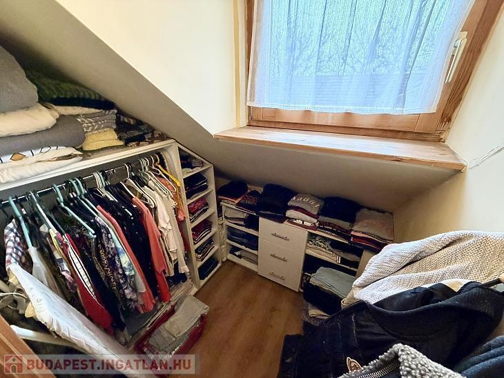 Az emeletre érve egy külön gardróbszoba biztosít kényelmes tárolási lehetőséget, továbbá két külön nyíló szoba kapott helyet, amelyek kiválóan alkalmasak hálónak, gyerekszobának vagy dolgozónak. A fürdőszoba WC-vel szintén az emeleten található. A lakás minden helyiségében új, dupla üvegű, redőnnyel ellátott nyílászárók gondoskodnak a megfelelő szigetelésről és a kellemes hőérzetről.