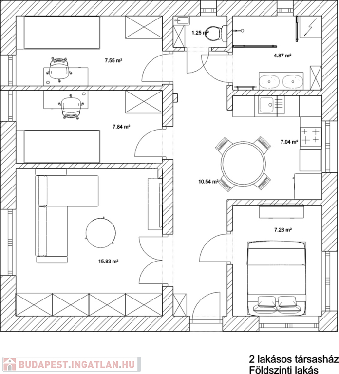 A lakások a ház két oldalán helyezkednek el, teljesen külön bejárattal, ügyvéd általi megosztással.