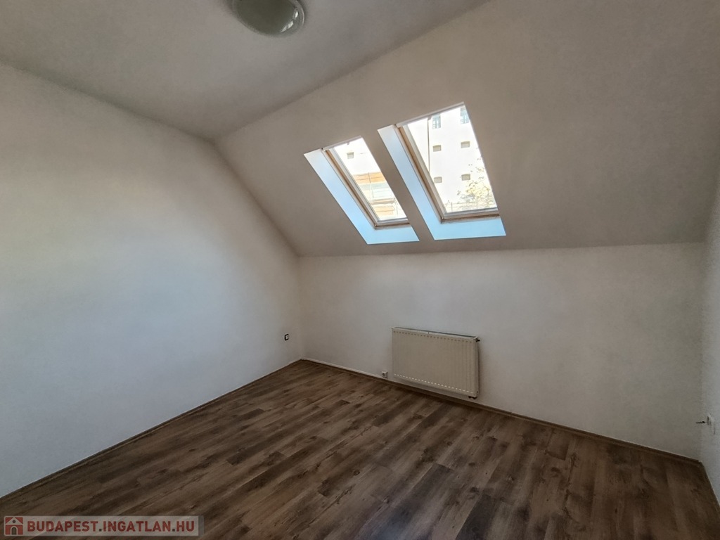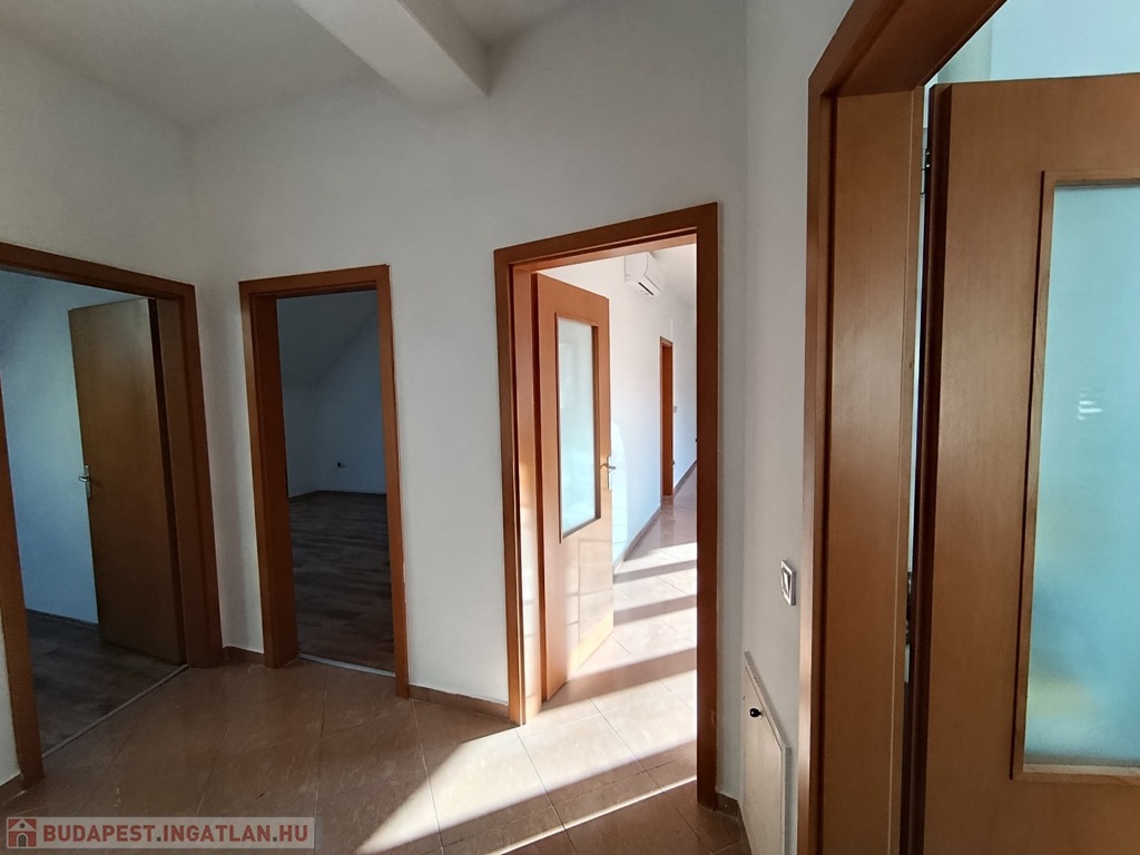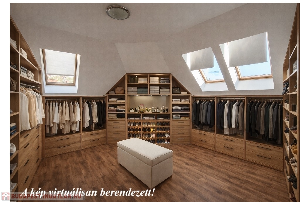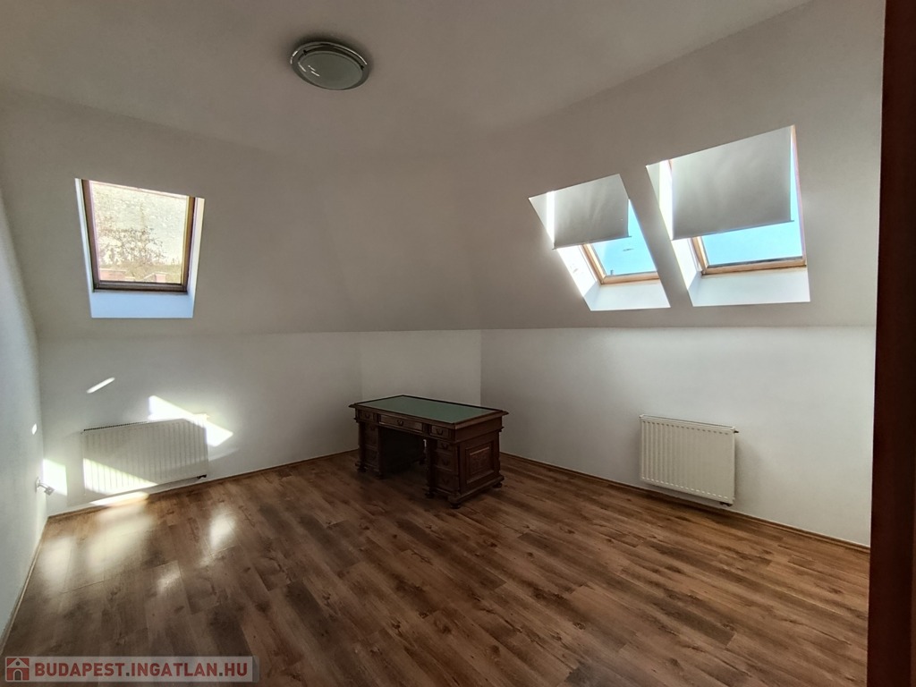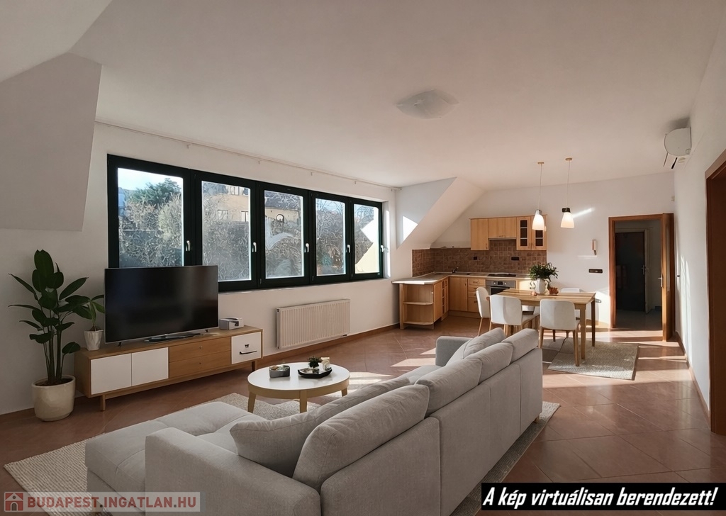 A tetőtér a 2000-es évek elején teljes körű felújításon esett át – beleértve a teljes tetőcserét is. A 105 m²-es lakás elrendezése praktikus és otthonos: három különálló szoba, egy amerikai konyhás- étkezős nappali, tágas fürdőszoba káddal és WC-vel, valamint külön vendég WC. A burkolatok járólap illetve a szobákban szalagparketta.