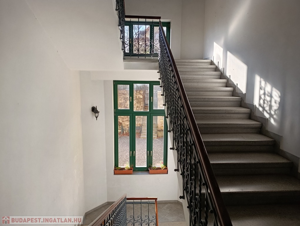 A ház belső udvara távirányítós kapun keresztül, biztonságosan közelíthető meg. A barátságos, mindössze 8 lakásos társasház 2. emeletén található ez a fényes, tágas, különleges atmoszférájú tetőtéri otthon, amelyhez saját biciklitároló és belső udvari parkoló is tartozik. A gépkocsi-beálló vételára 15 millió forint, amely a lakás vételárán felül fizetendő, és a lakás megvásárlásával egyidejűleg kötelezően megvásárolandó.
