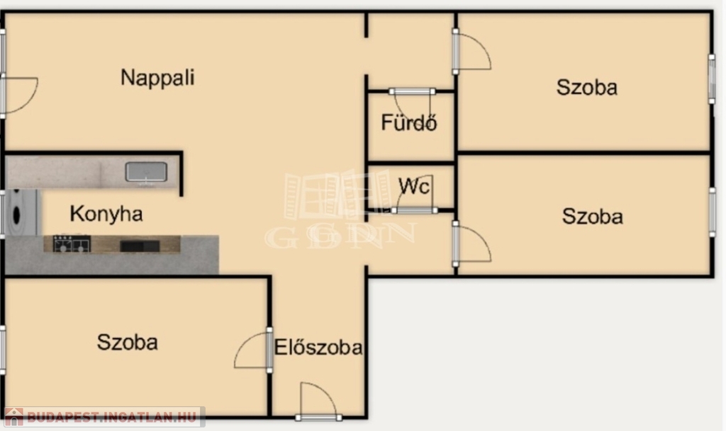 ✔ Tágas nappali + 3 külön nyíló félszoba