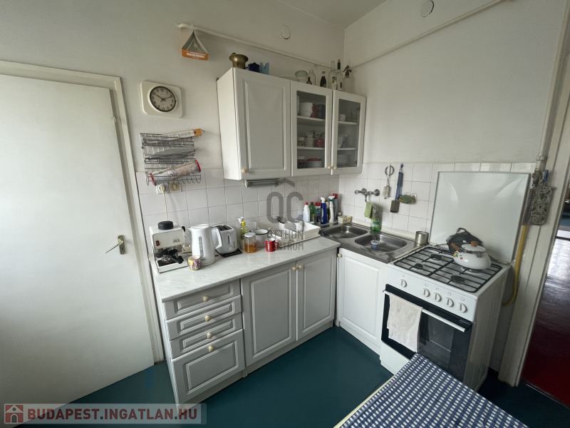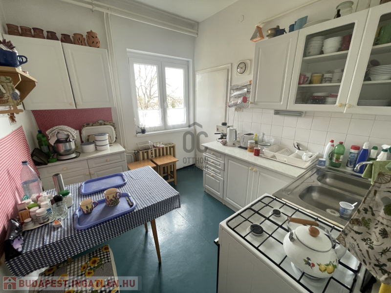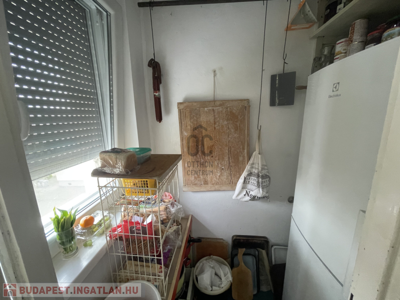 -a konyha tágas, ablakkal ellátott, innen nyílik egy kamra is,