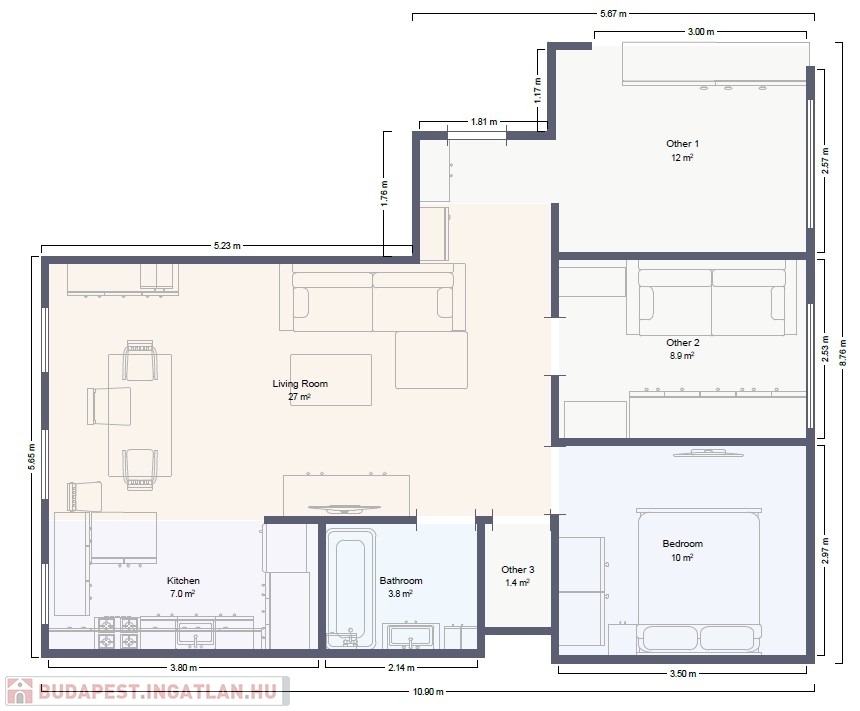 - 74 nm, 1+3 szobás, (amerikai konyhás nappali és három hálószoba alkotja)