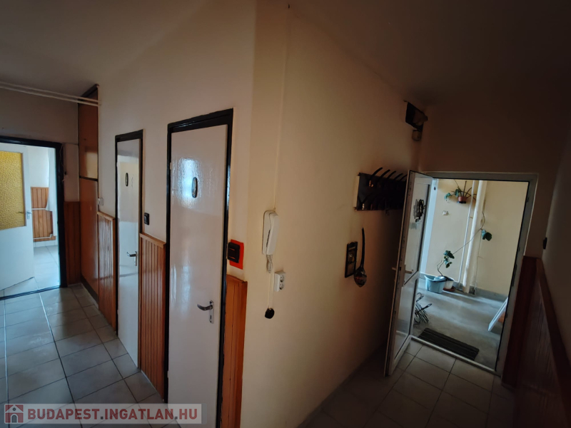 Az L alakú – beépített szekrényekkel rendelkező - előszobából lehet megközelíteni a lakás összes helyiségét: 3 nagy méretű lakószoba (19, 18 és 12,5 m2 alapterületűek), zuhanyzós fürdőszoba, külön WC., konyha (melyből kamra nyílik) került elhelyezésre. Az egyik déli fekvésű lakószoba egy 6,8 m2-es erkélykapcsolattal rendelkezik, amely a társasház rendezett kertjére enged kilátást.