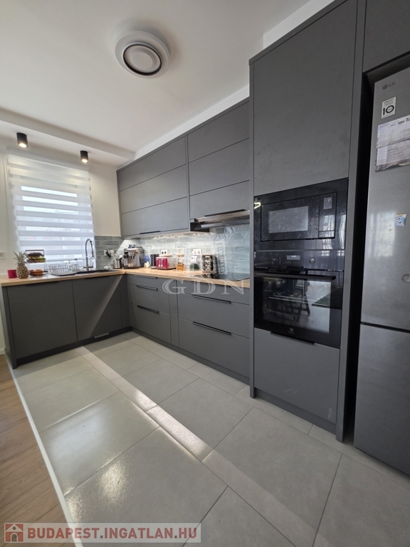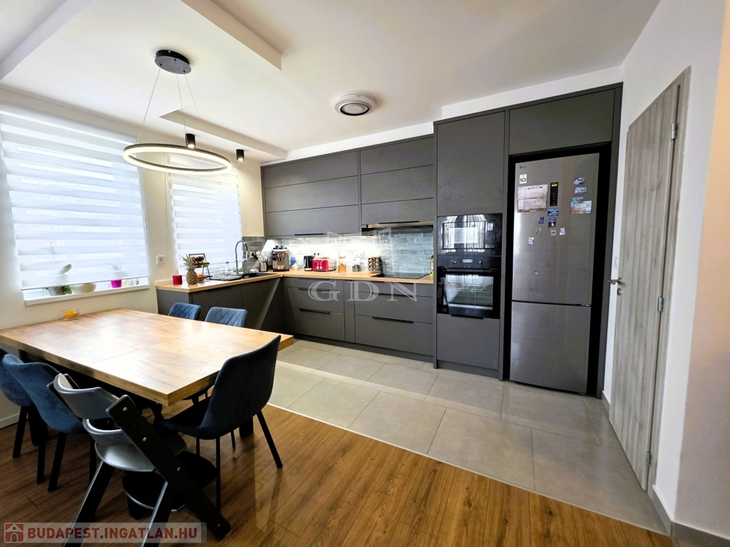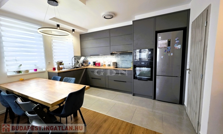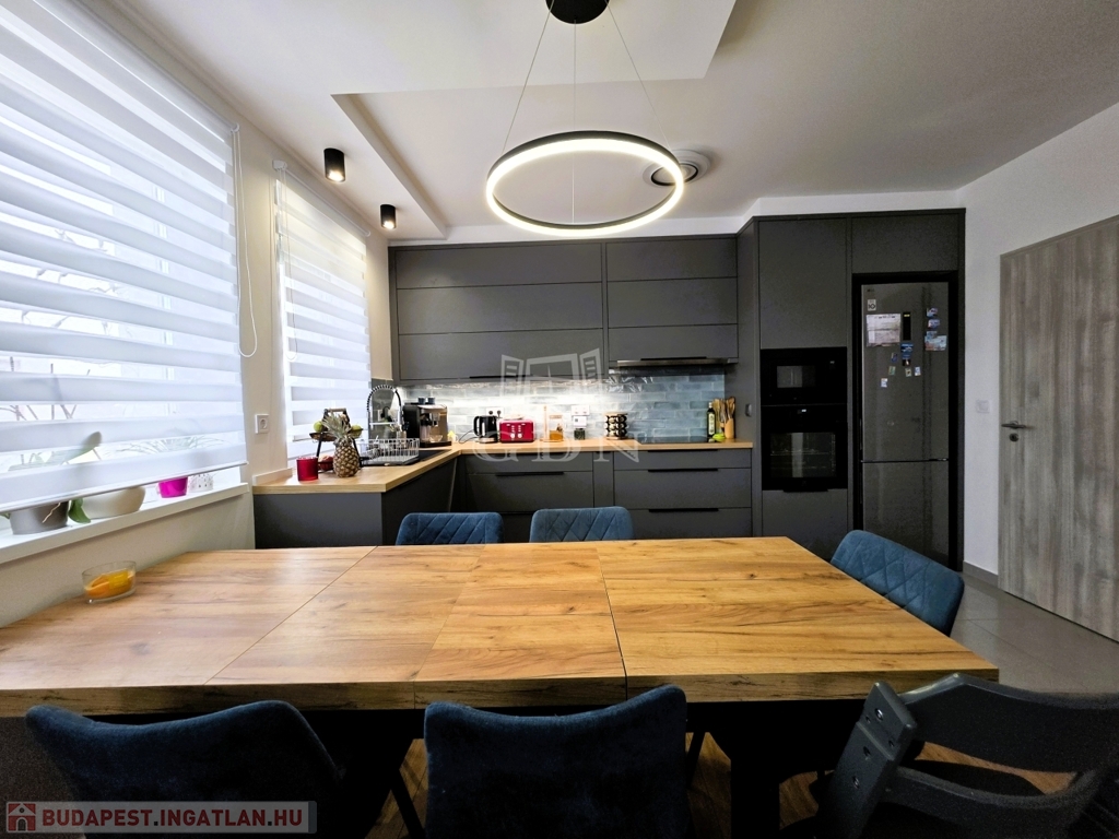 - A tágas nappali–amerikai konyhás tér a lakás valódi központja, amely gépesített konyhával várja új tulajdonosát – tökéletes helyszín a mindennapokra és a vendéglátásra egyaránt.