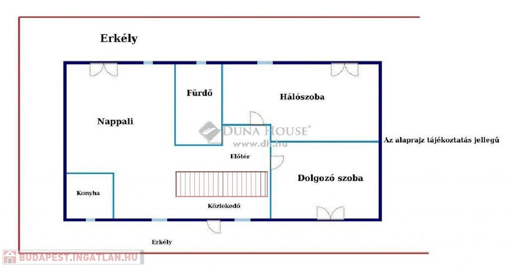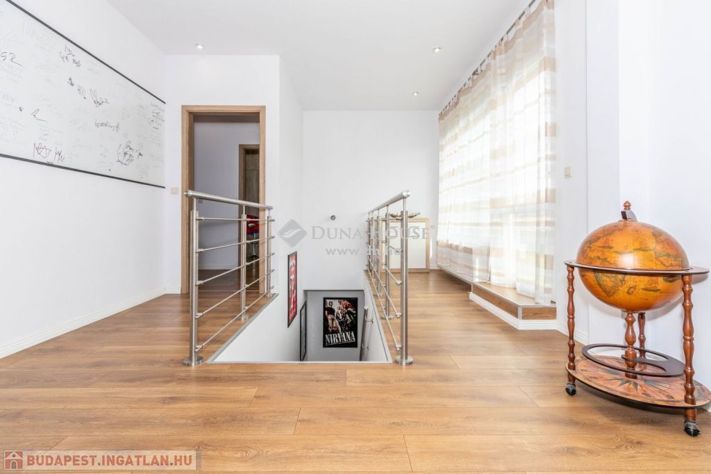 Az ingatlanba beérve az alsó szinten található az előszoba, fürdőszoba külön WC helyiséggel, gardrób és egy tágas szoba külön erkéllyel. Felső szintre felérve található a tágas nappali, konyha, dolgozószoba, fürdőszoba, hálószoba.