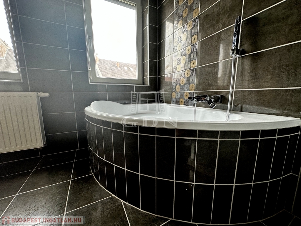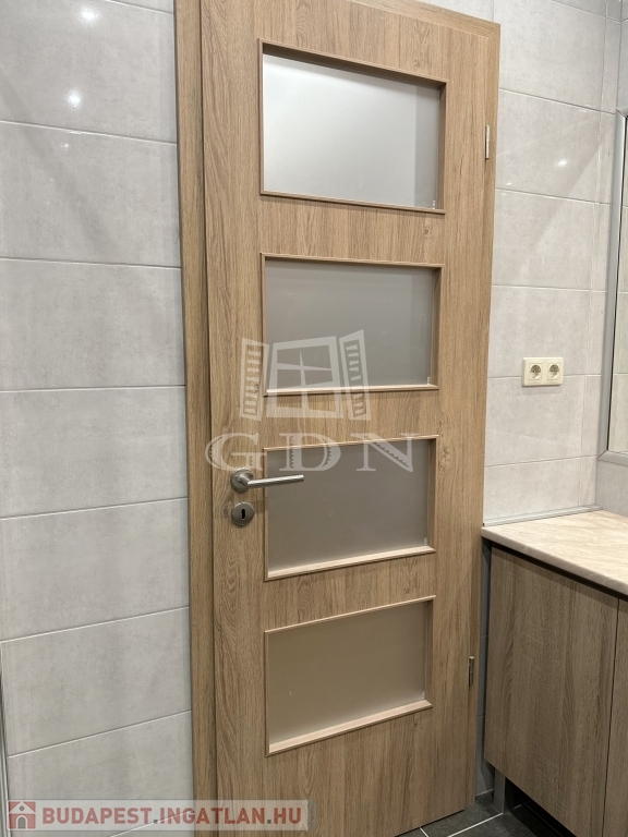 Az ablakok többrétegű műanyag nyílászárók, elektromos redőnnyel ellátottak. A hideg-meleg burkolatok új állapotnak örvendnek, a belső ajtók minőségi, tejüveggel ellátottak. A világításról beépített Spot lámpák gondoskodnak.