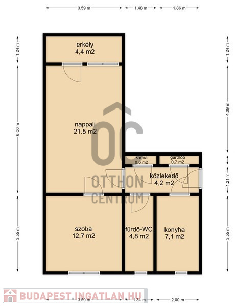 - A nappaliból nyílik a 4,4 m2-es erkély.