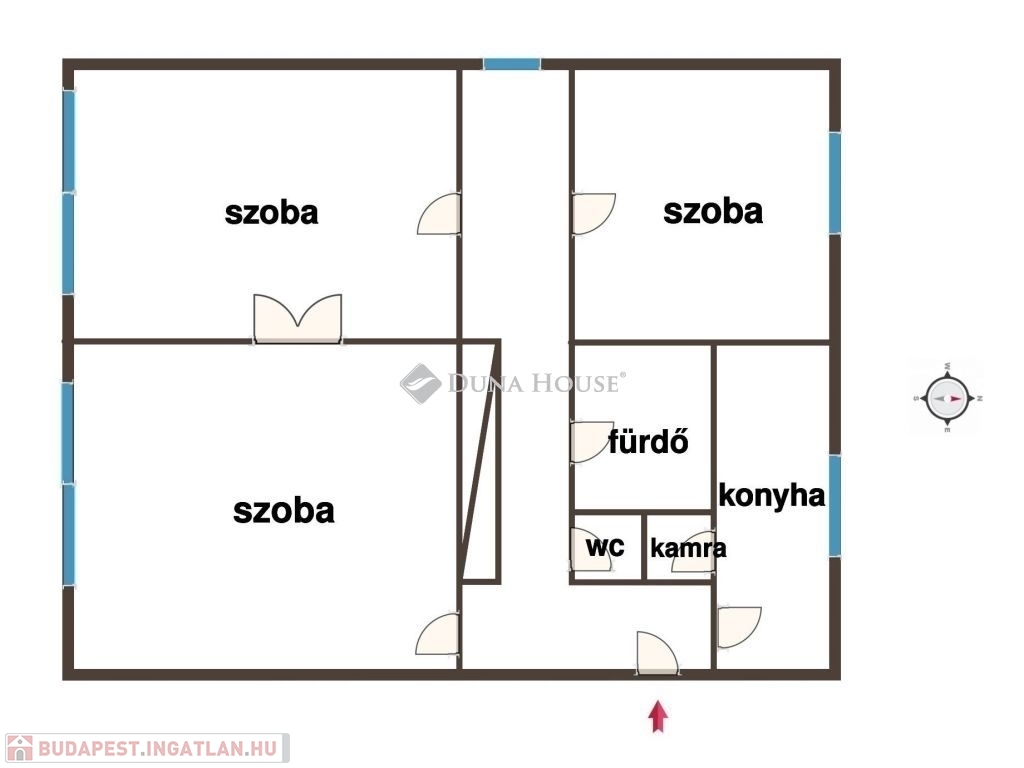 Az ingatlanba belépve egy beépített szekrényes folyosót találunk. Innen nyílik 3 kényelmes méretű szoba, valamint egy fürdő és egy wc.
