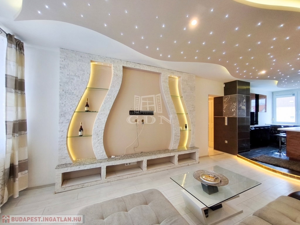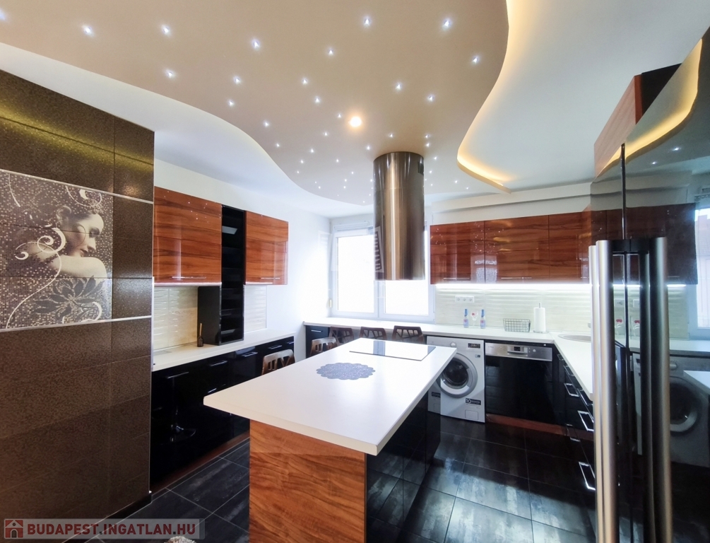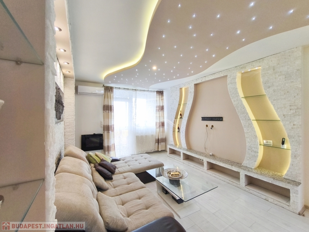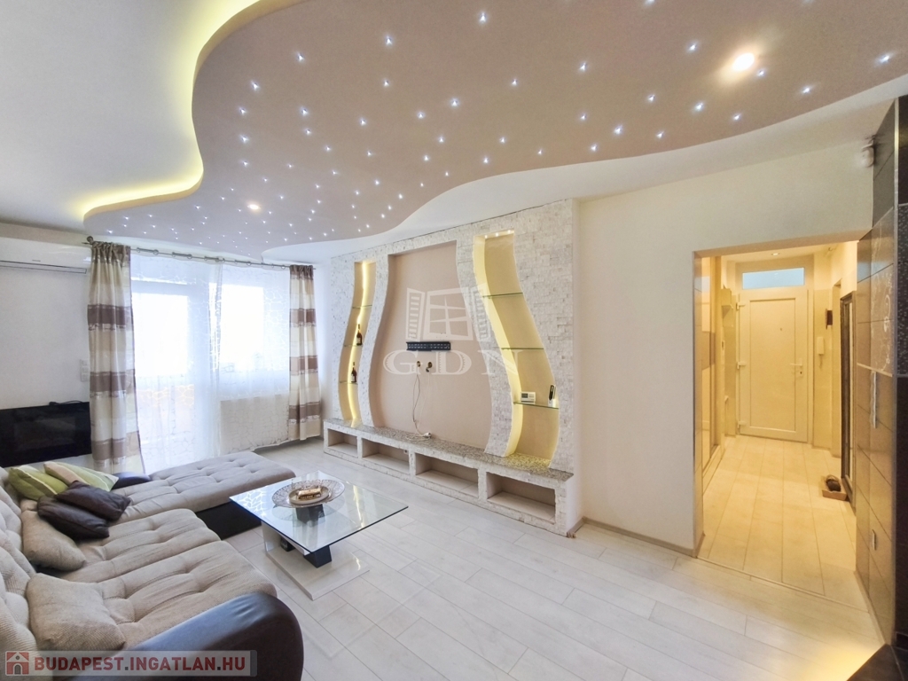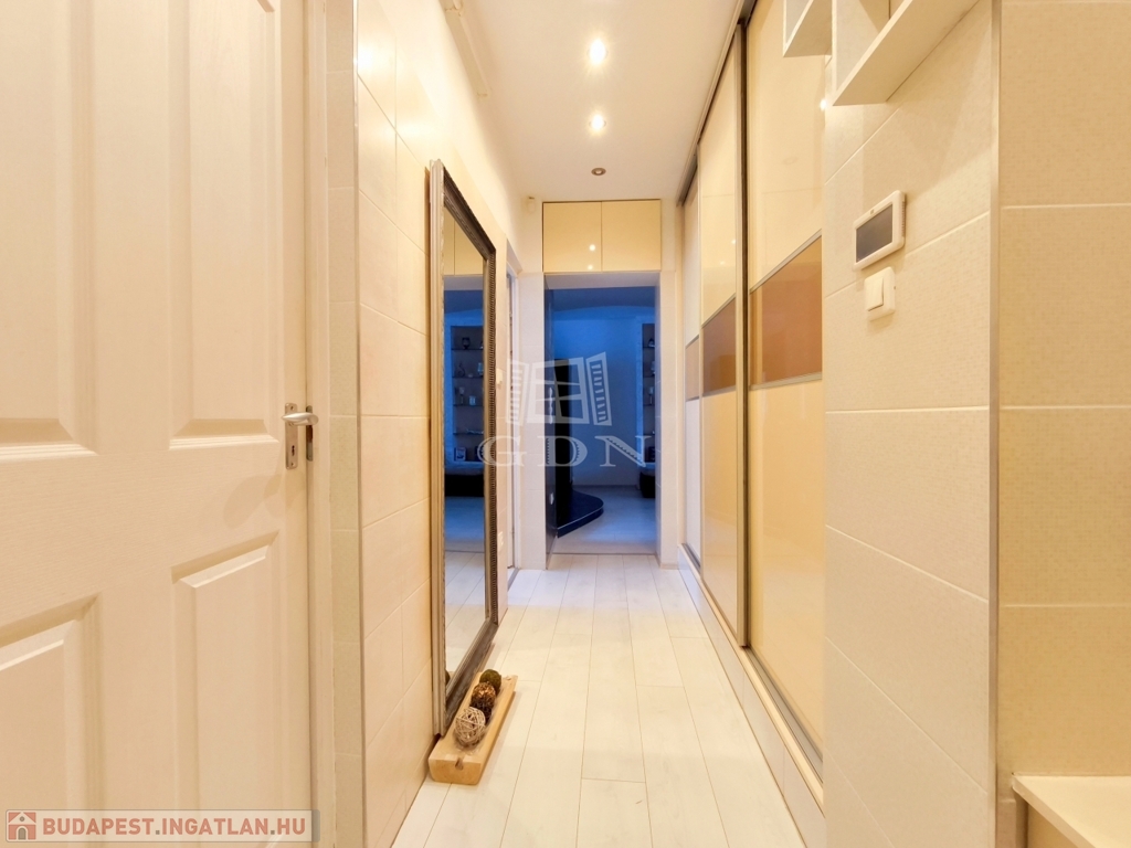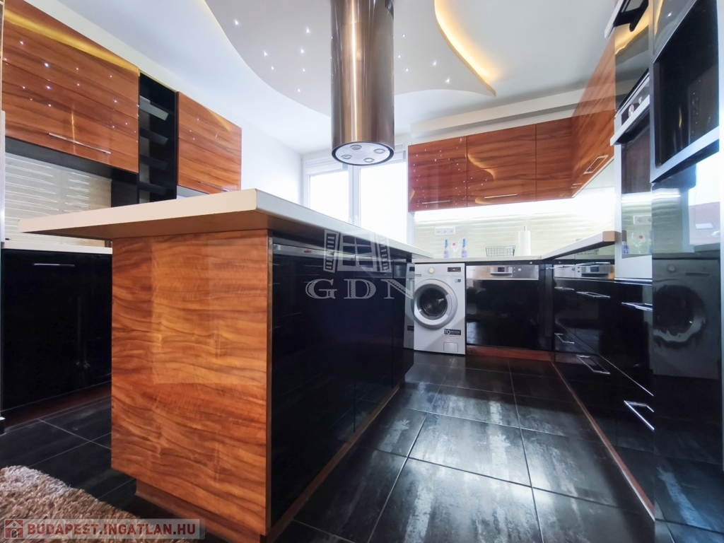 A nappali amerikai konyhájával és konyhaszigetével, az előszoba a tolóajtós beépített szekrényével, a háló különleges tapétájával a felújított fürdő pedig egyedi csempéivel gondoskodik a kényelmes mindennapokról ész Otthon érzetről.
