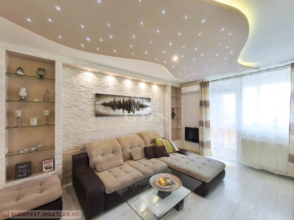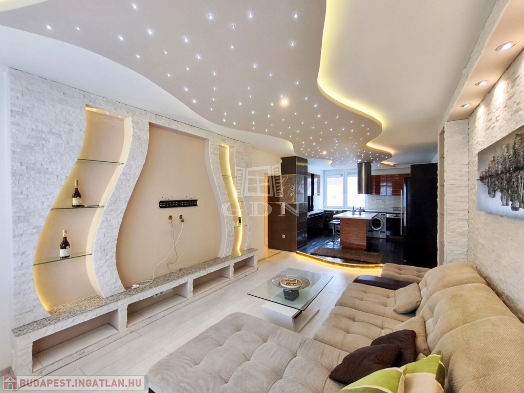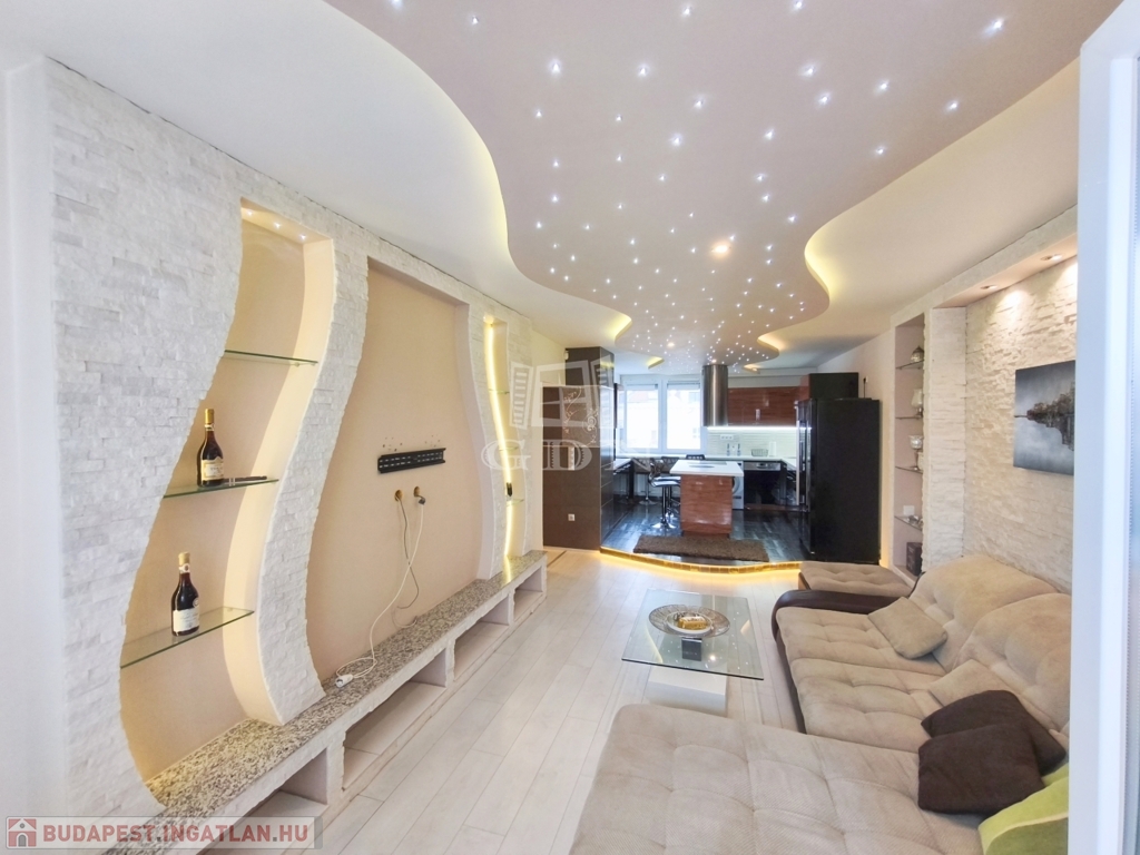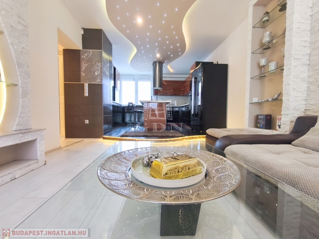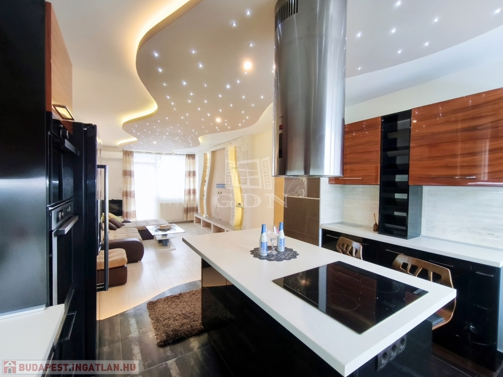 A nappali amerikai konyhájával és konyhaszigetével, az előszoba a tolóajtós beépített szekrényével, a háló különleges tapétájával a felújított fürdő pedig egyedi csempéivel gondoskodik a kényelmes mindennapokról ész Otthon érzetről.