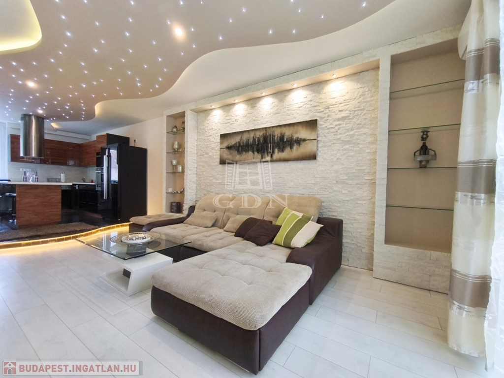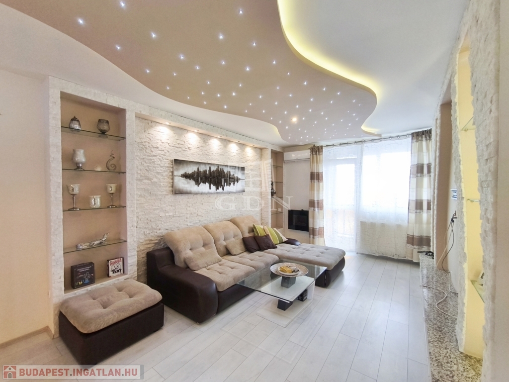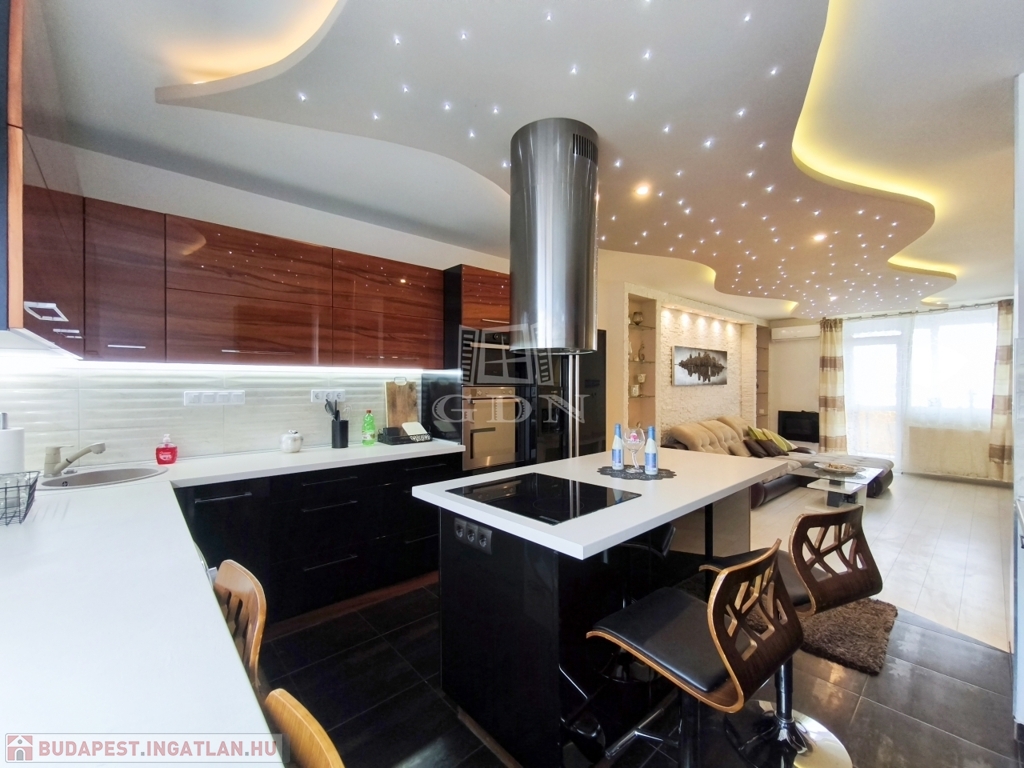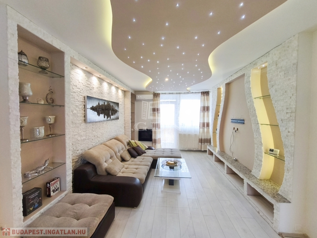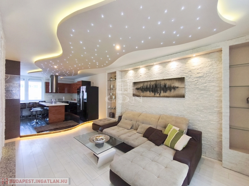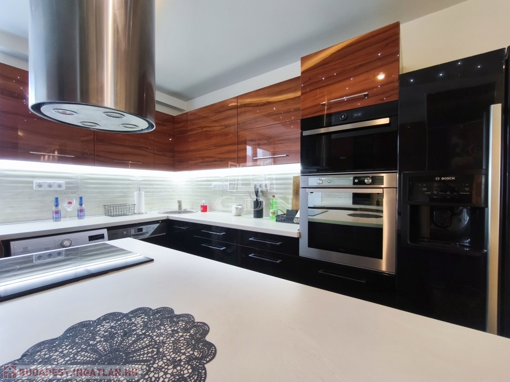 A nappali amerikai konyhájával és konyhaszigetével, az előszoba a tolóajtós beépített szekrényével, a háló különleges tapétájával a felújított fürdő pedig egyedi csempéivel gondoskodik a kényelmes mindennapokról ész Otthon érzetről.