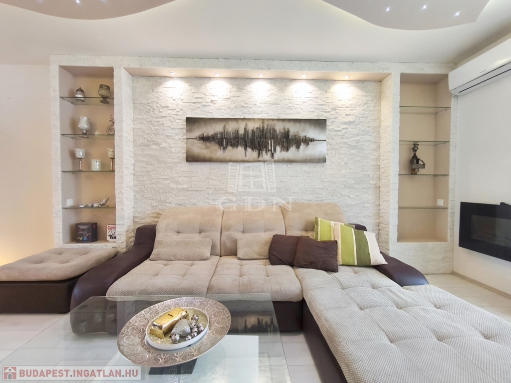 Az ingatlan különlegességét a látványkandalló, valamint a dekoratív márvány részletek teszik teljessé.