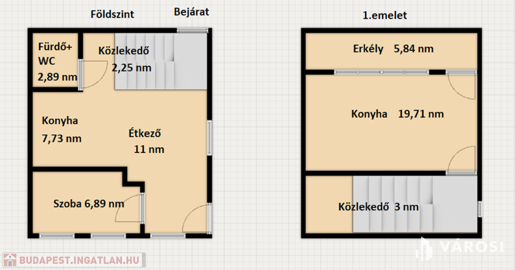 A 2. emeleten kettő szoba, egy 11 nm és egy 12 nm nagyságú szoba van, ezekhez tartozik egy közel 3 nm nagy zuhanyzó+ WC.