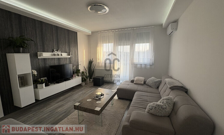 A felújítás során megtörtént a víz- és villanyvezetékek cseréje, valamint új burkolatok kerültek beépítésre, így a lakás fiatalos, modern megjelenésű.