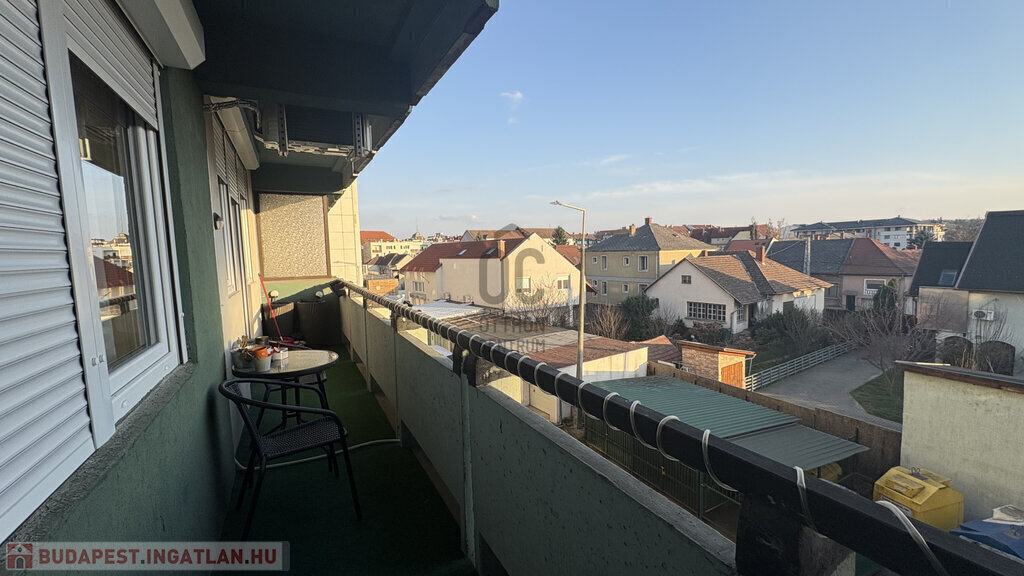 A déli tájolású, világos lakás elrendezése praktikus és kényelmes: nappali, 2 külön nyíló szoba, modern gépesített konyha–étkező, fürdőszoba, külön WC és közlekedő. A lakás kényelmét egy 8 m²-es, nyugodt elhelyezkedésű erkély is növeli, amely nem a forgalmas utcára néz, így kellemes, csendes környezetet biztosít.