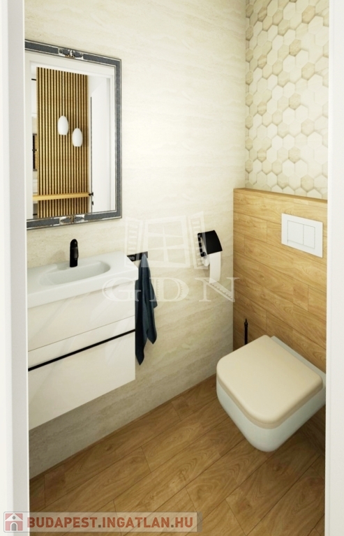A lakásban különálló mosdó, és egy zuhanyzós fürdőszoba került kialakításra.